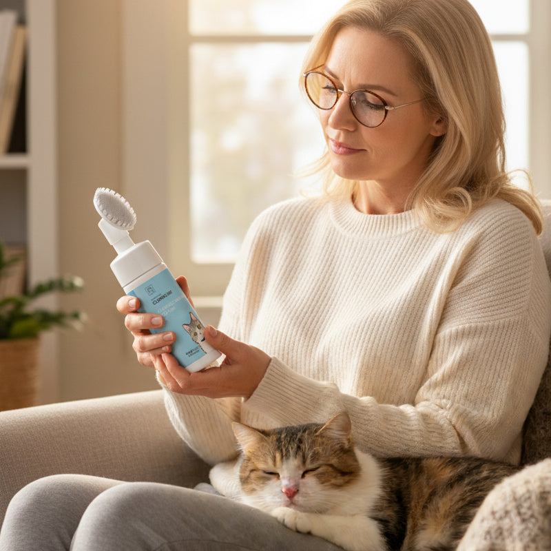 Spoelvrij kinreinigingsschuim voor huisdieren met siliconenborstel